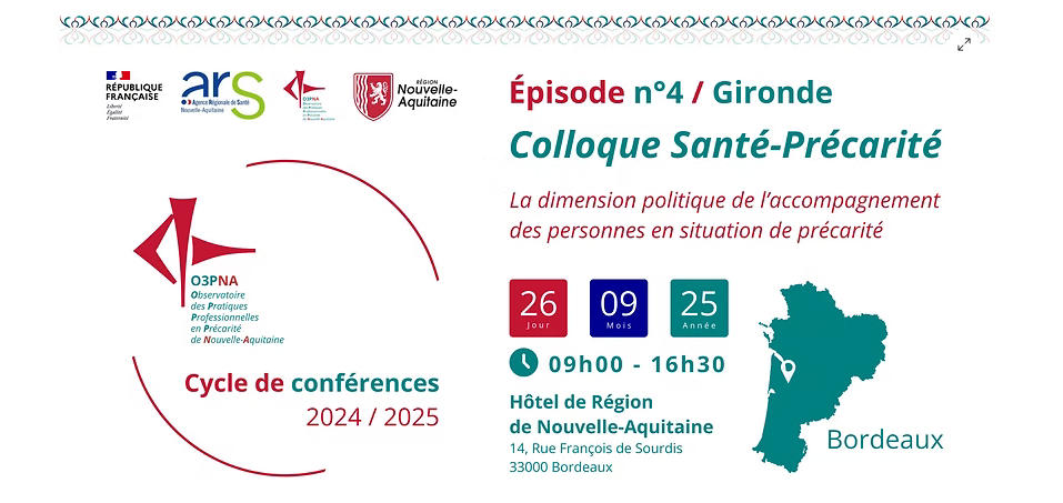 "Proposée par le Docteur LAGABRIELLE (Praticien hospitalier psychiatre, Médecin pilote de l'O3PNA), la journée portera sur : « La dimension politique de l’accompagnement des personnes en situation de précarité » . Ce sera également le sujet de sa conférence.